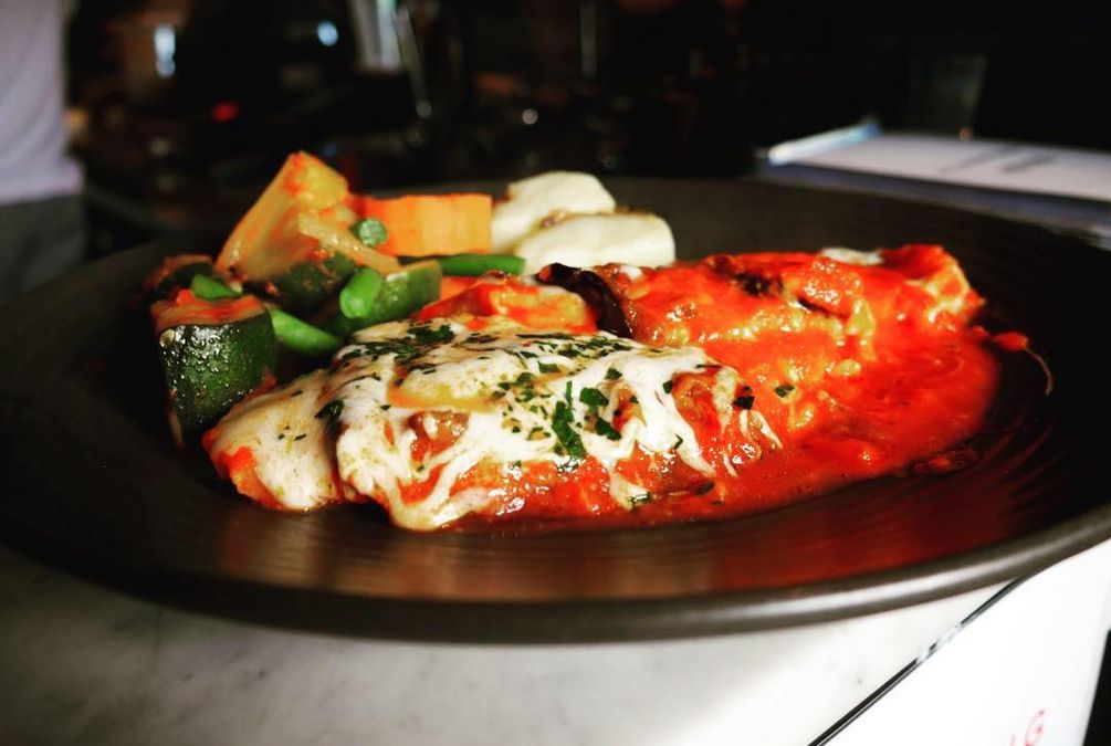 Chicken breast cooked in a napoletana sauce, with grilled eggplant & mozzarella