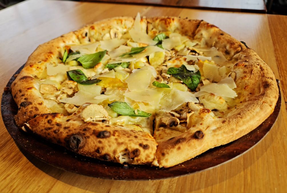 Potato, mushroom, basil, fior di latte, parmesan & mozzarella