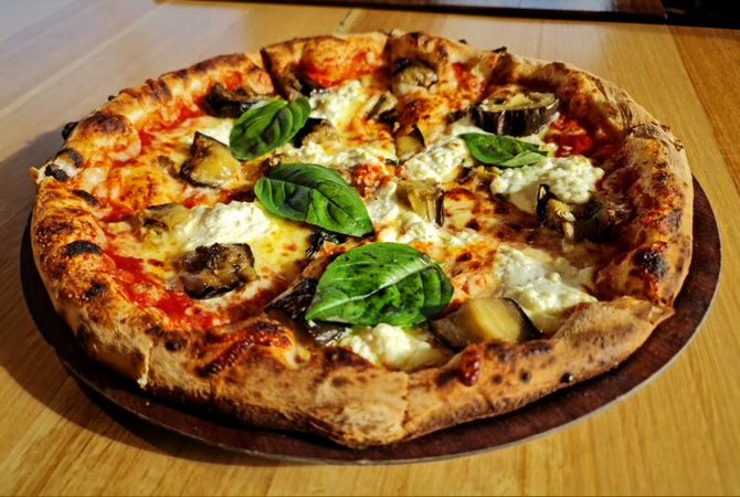Eggplant, basil, ricotta & mozzarella